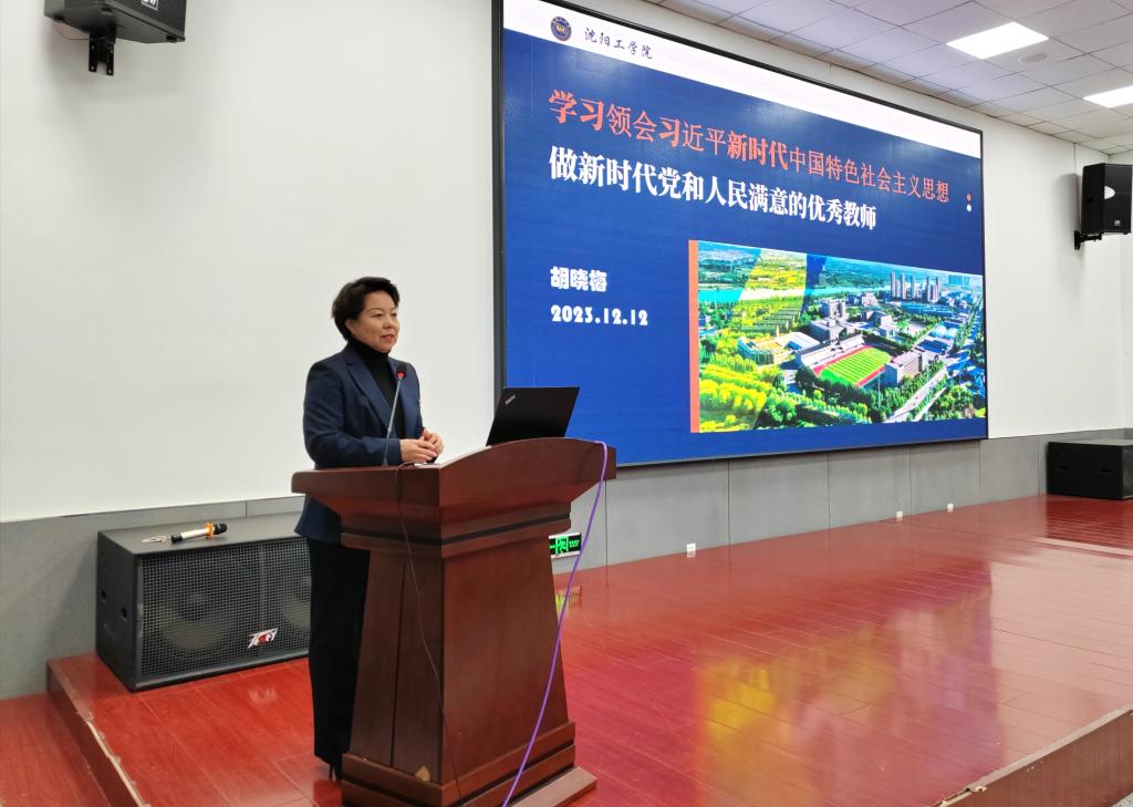 会上,胡晓梅作题为《学习领会习近平新时代中国特色社会主义思想 做新时代党和人民满意的优秀教师》的报告,要求新入职的教职员工深刻认识新时代伟大变革,最根本在于有习近平总书记掌舵领航,有习近平新时代中国特色社会主义思想科学指引。习近平总书记关于教师队伍建设的重要论述,是全面推进新时代教师队伍建设的根本遵循和重要指引。希望大家胸怀“国之大者”,遵守职业规范,坚决守好铸魂育人的坚强阵地,为辽宁全面振兴新突破作出应有贡献。