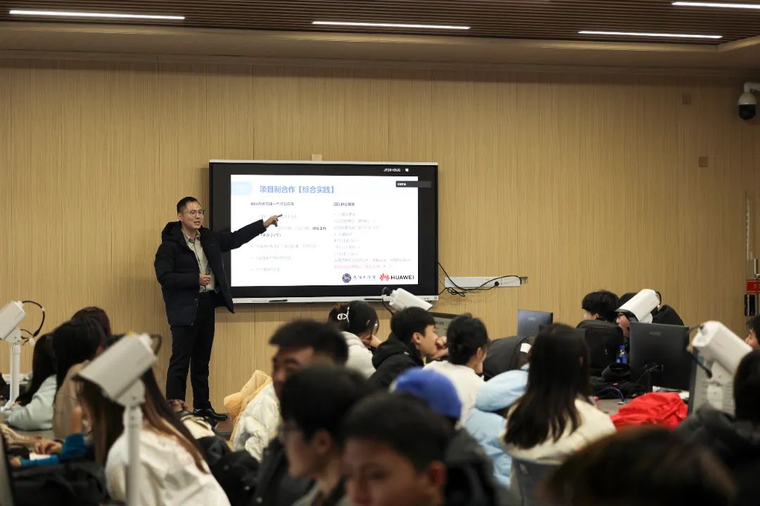 2月24日,华为首批明星讲师团队正式入驻,开启驻场教学,为我校计算机科学与技术、人工智能、通信工程等5个专业40余个班级带来了昇腾机器学习、鸿蒙移动应用开发、鲲鹏开发技术与应用等前沿课程,为校企双方深化产教融合按下“加速键”。
