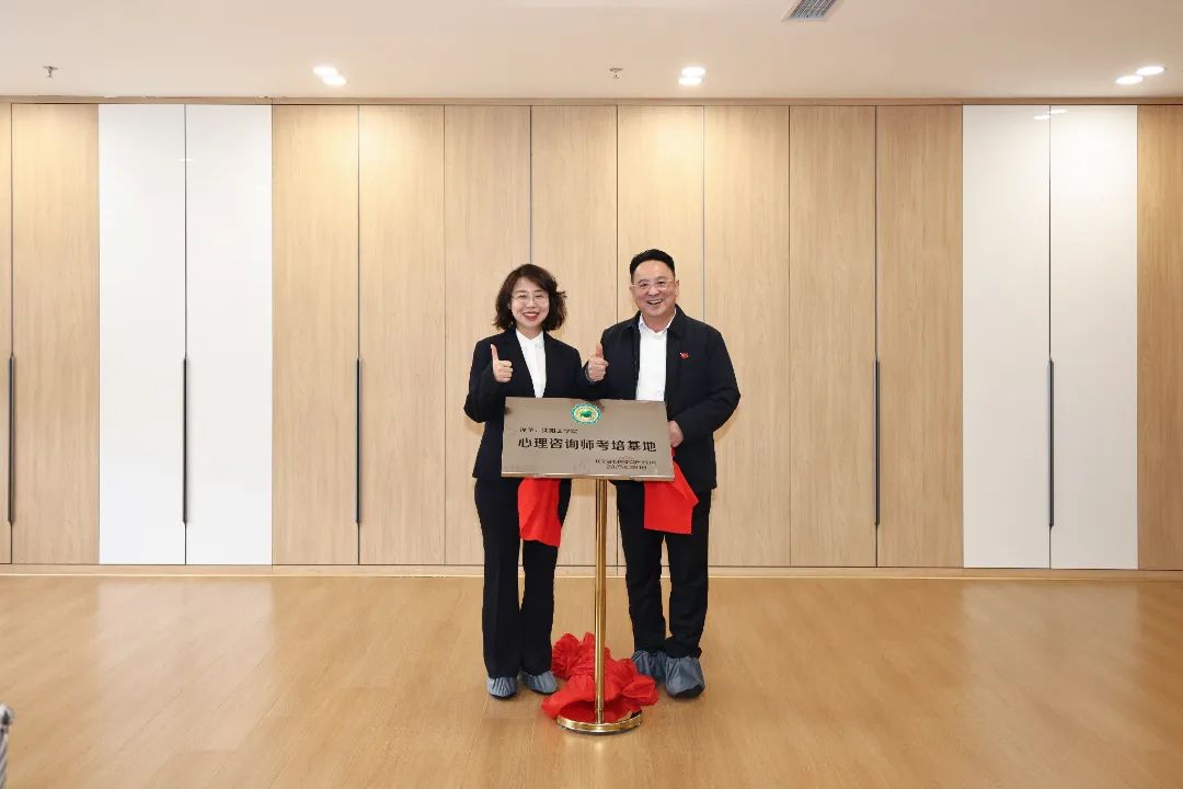 童飞与王兆宝为我校学前教育试点示范基地授牌,杨子与徐颖为我校心理咨询师考培基地授牌。双方进行了深入的讨论与交流,展望未来教育模式的创新和社会服务的发展,提出利用现代科技解决教育和心理问题的可能性,对未来的合作充满信心。