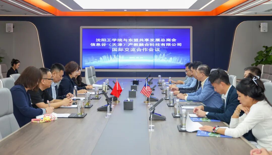东盟共享发展总商会郑礼锐、王显琼,信息谷(天津)产教融合科技有限公司董事寇建陆、甘霖,信息谷(天津)产教融合科技有限公司沈阳公司总经理王博闻,我校现代教育技术服务中心主任姚剑、国际教育学院院长张丽丽陪同考察并参加座谈。