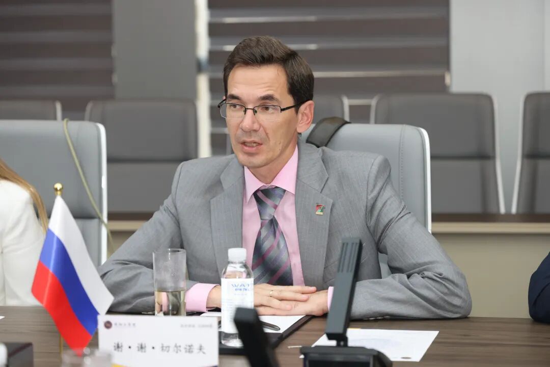 座谈会前,两校共同举办了“2+2”联合培养学生见面会。切尔诺夫·谢尔盖·谢尔盖耶维奇与我校学生进行了亲切互动。从校园环境、教学设施、师资力量到学生生活等方面,全面介绍新西伯利亚国立技术大学情况,帮助学生建立直观认知。在互动环节中,该校教师针对学生关心的课程设置、留学适应、就业发展等问题,逐一耐心解答,为学生搭建起清晰的交流渠道。