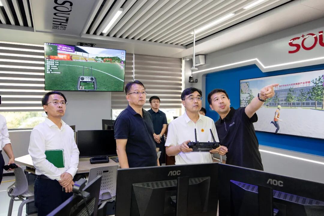 座谈前,刘常青一行参观了我校的沈工-南方测绘北斗时空信息产业学院、沈工-美的数字灯塔学院和库卡授权工业机器人学院,详细考察了智能化生产线和教学设施,对我校在智能制造、数字技术等领域的创新成果给予高度评价。
