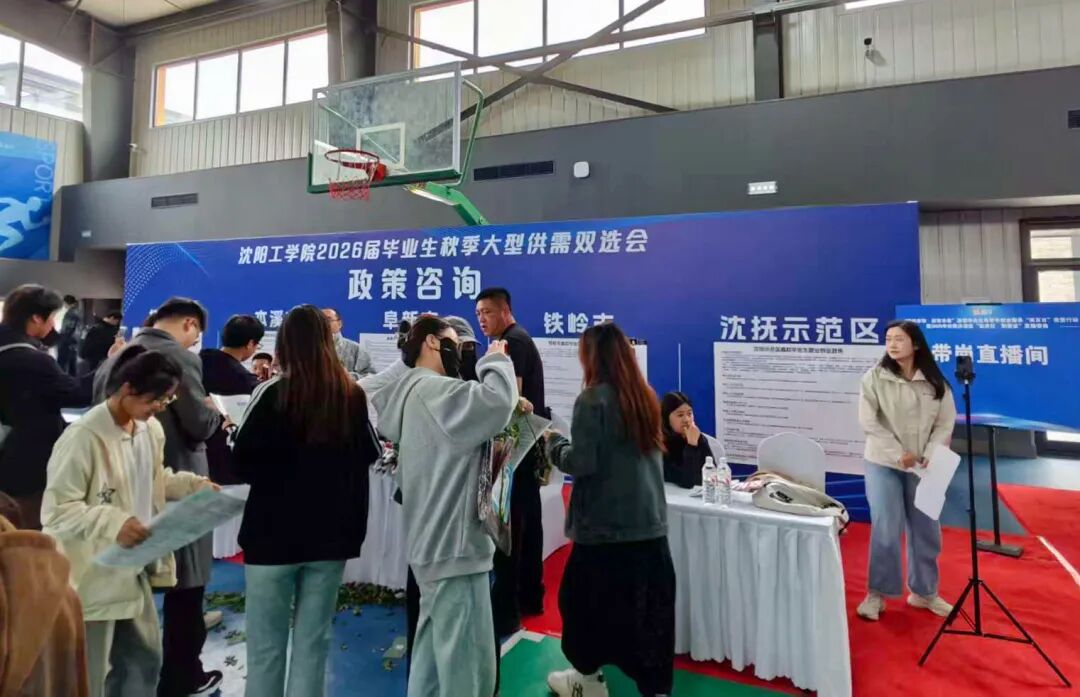 下午两点一开场,体育馆瞬间被青春活力填满!毕业生们手里攥着精心打磨的简历,脚步不停穿梭在各个展位前。“岗位对专业技能有哪些要求?”“未来晋升路径是怎样的?”大家围着企业HR认真提问,眼神里满是对职场的期待。虽然现场摩肩接踵,但全程井然有序——递简历、交流、记录信息,每一步都有条不紊,展现了沈工学子的职业素养。